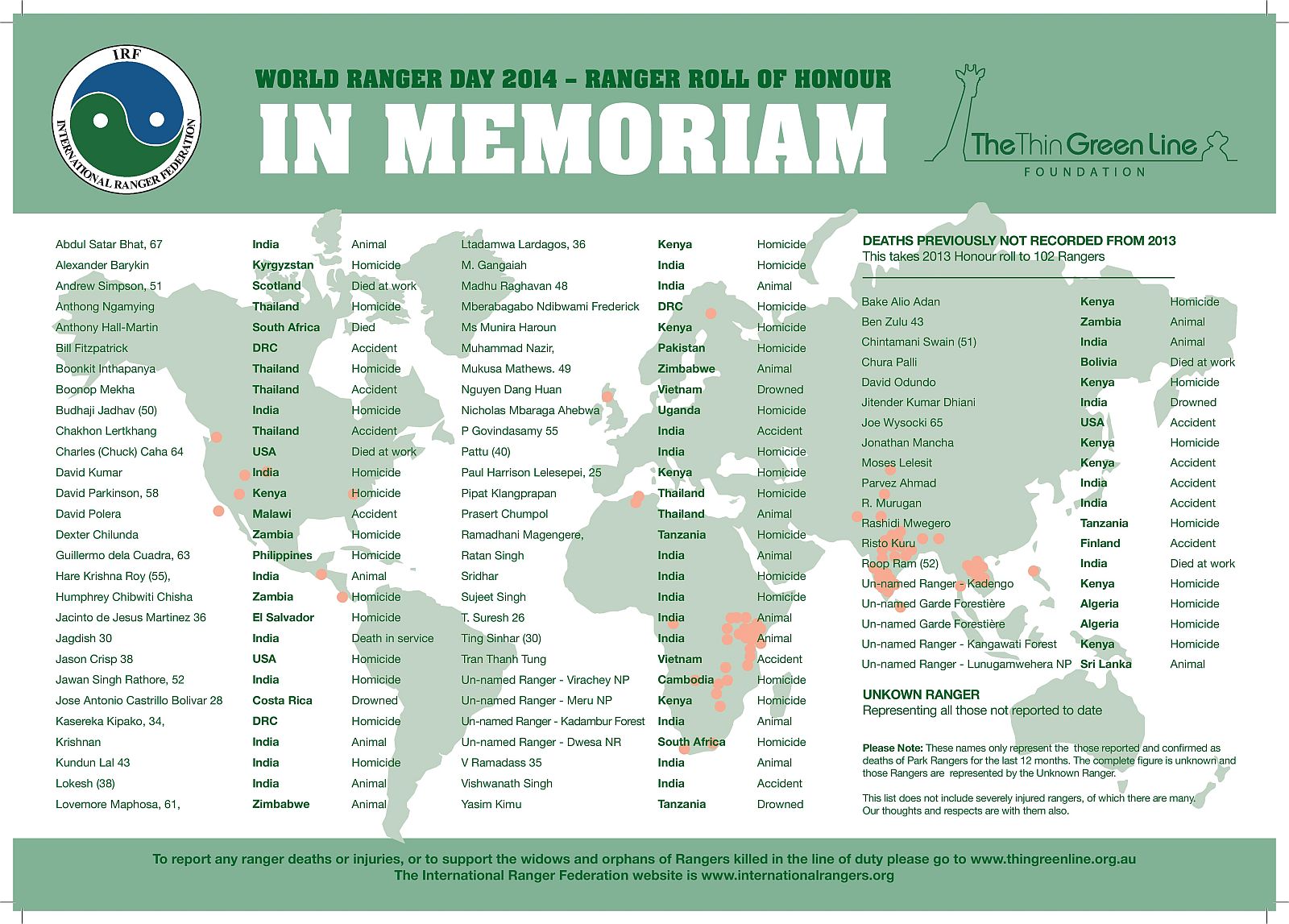 Names of park rangers killed in line of duty in 2014, often by poachers. (Photo: International Ranger Federation)