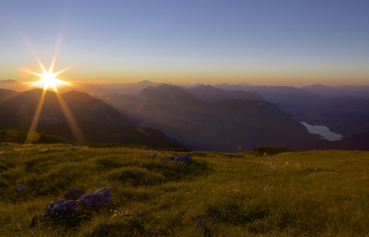 Sunset over the Hallstätter See in the Austrian Alps near Salzburg. Excavations near the lake show that people have lived here in relative harmony with the mountain environment since the late Bronze Age, more than 3,000 years ago. Now, climate change threatens the sustainability of mountain cultures in the region.