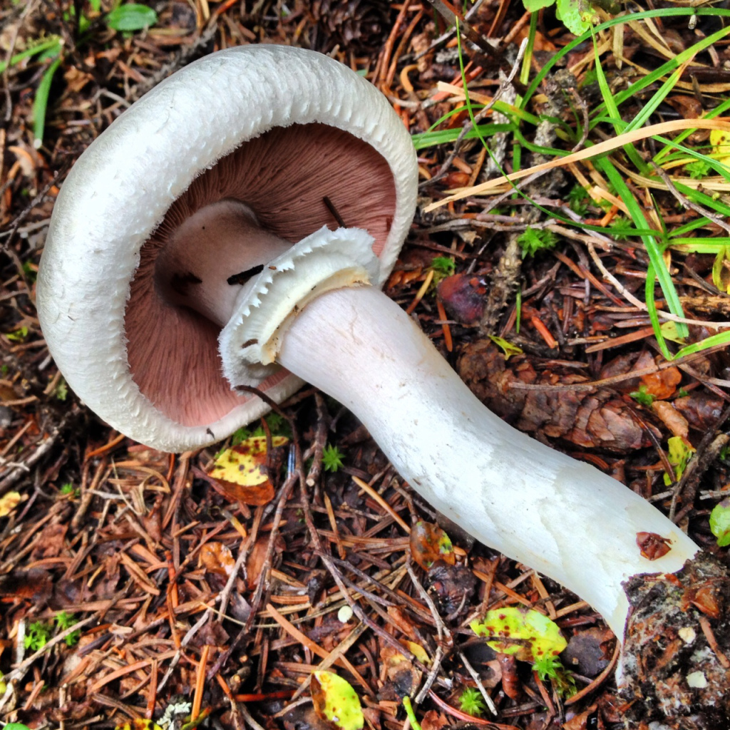 A wild Agaricus mushroom, closely related to the store-bought white button variety, scientifically called Agaricus bisporus. During a recent national mushroom conference in Colorado, biologists working for commercial mushroom growers combed the forests for new specimens that might have some desirable new genetic qualities for cultivators. (Photo: Bob Berwyn)