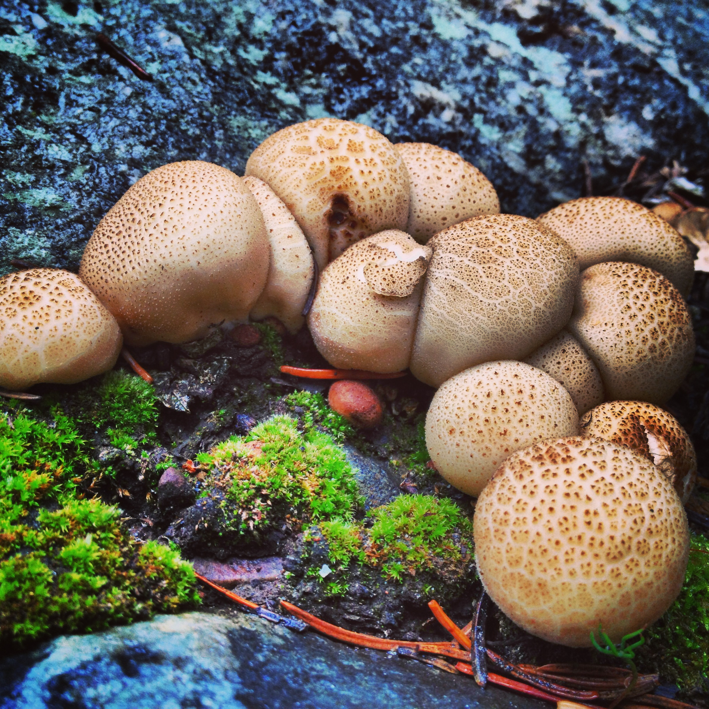 Puffball mushrooms about the size of golfballs are common in forests throughout the world. They are part of the fungal web that connects forests, earth, and atmosphere in a dynamic cycle. (Photo: Bob Berwyn)